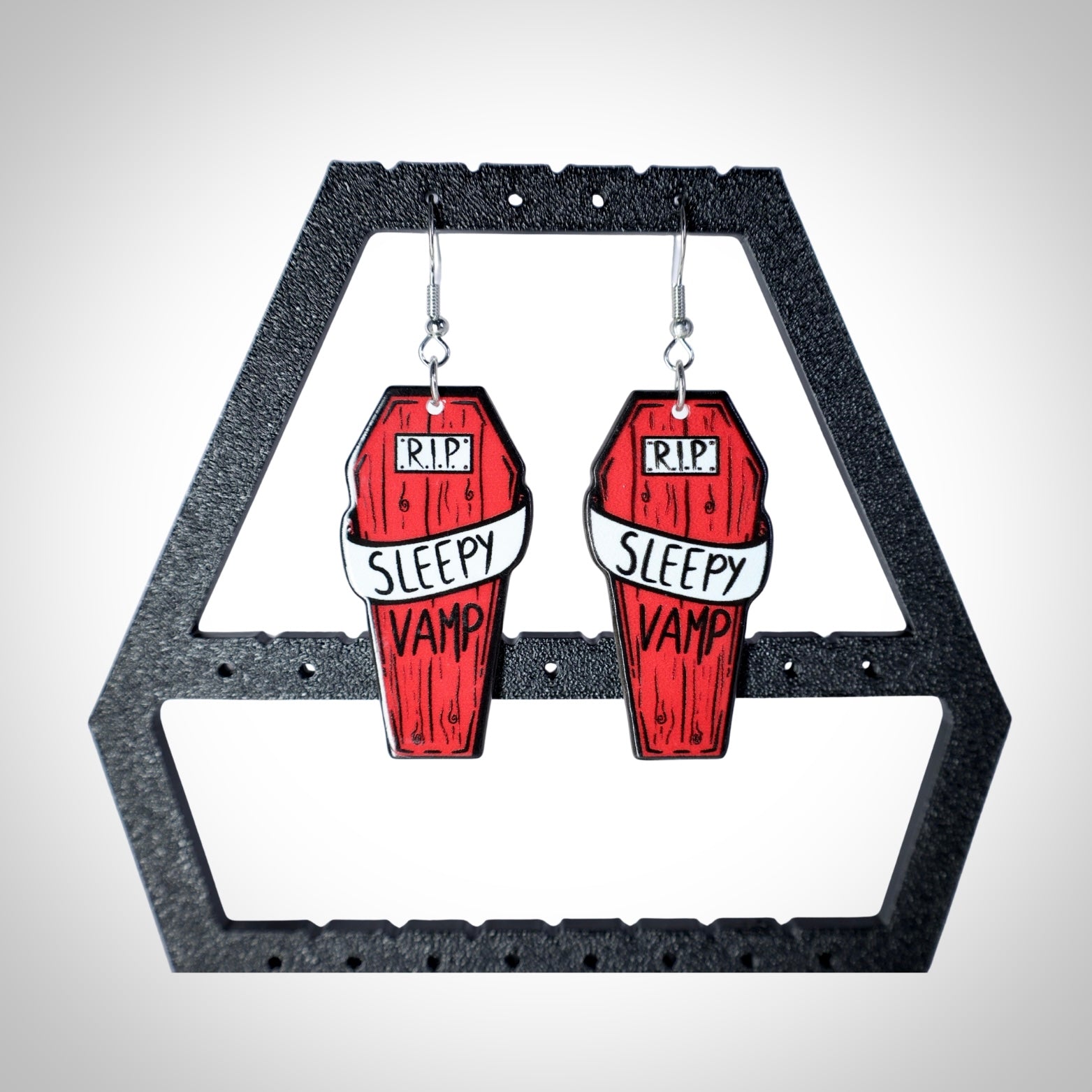 Make a bold statement with the R.I.P Sleepy Vamp Earrings—dark, edgy, and perfect for those who dare to embrace their nocturnal side. These earrings mix gothic flair with a touch of sleepy charm, adding an irresistible twist to your look. Ideal for nights out or any time you want to stand out with fearless style.